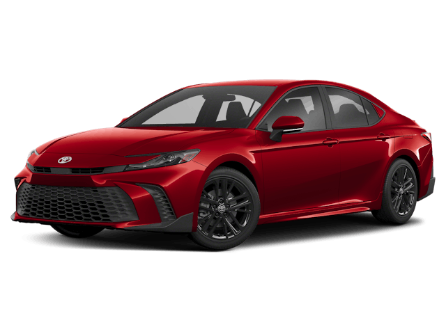 Red 2025 Toyota Camry SE FWD eCVT 2.5L 4-Cylinder 16V DOHC LIFETIME OIL CHANGES, 2.5L 4-Cylinder 16V DOHC, 20 Cloth.Equipped with Convenience Package (Auto-Dimming Rearview Mirror w/HomeLink and Smart Key System), Multimedia Upgrade Package (Radio: Toyota Audio Multimedia w/12.3" Touchscreen), 2.5L 4-Cylinder 16V DOHC, 20 Cloth, 4-Wheel Disc Brakes, 6 Speakers, ABS brakes, Air Conditioning, Alloy wheels, AM/FM radio: SiriusXM, Apple CarPlay/Android Auto, Auto High-beam Headlights, Automatic temperature control, Brake assist, Bumpers: body-color, Delay-off headlights, Driver door bin, Driver vanity mirror, Dual front impact airbags, Dual front side impact airbags, Electronic Stability Control, Emergency communication system: Safety Connect (up to 10-year trial subscription), Exterior Parking Camera Rear, Four wheel independent suspension, Front anti-roll bar, Front Bucket Seats, Front Center Armrest, Front dual zone A/C, Front reading lights, Fully automatic headlights, Heated door mirrors, Illuminated entry, Illuminated Trunk Sill (TMS), Knee airbag, Leather Shift Knob, Leather steering wheel, Low tire pressure warning, Occupant sensing airbag, Outside temperature display, Overhead airbag, Overhead console, Panic alarm, Passenger door bin, Passenger vanity mirror, Power door mirrors, Power driver seat, Power steering, Power Tilt/Slide Moonroof, Power windows, Radio data system, Radio: Toyota Audio Multimedia w/8" Touchscreen, Rear anti-roll bar, Rear Parking Sensors, Rear reading lights, Rear seat center armrest, Rear side impact airbag, Rear window defroster, Remote keyless entry, Security system, SofTex & Fabric Seat Trim, Speed control, Speed-sensing steering, Split folding rear seat, Spoiler, Steering wheel mounted audio controls, Telescoping steering wheel, Tilt steering wheel, Traction control, Trip computer, Turn signal indicator mirrors, Variably intermittent wipers, and Wheels: 18" Black-Finished Alloy. 48/47 City/Highway MPGCall us for more information at (888) 512-4787 or Text Us directly at ‘45555’ today!